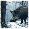 Bílý polštářek s potiskem - jelen, divočák, liška - bez výplně - 40x40cm