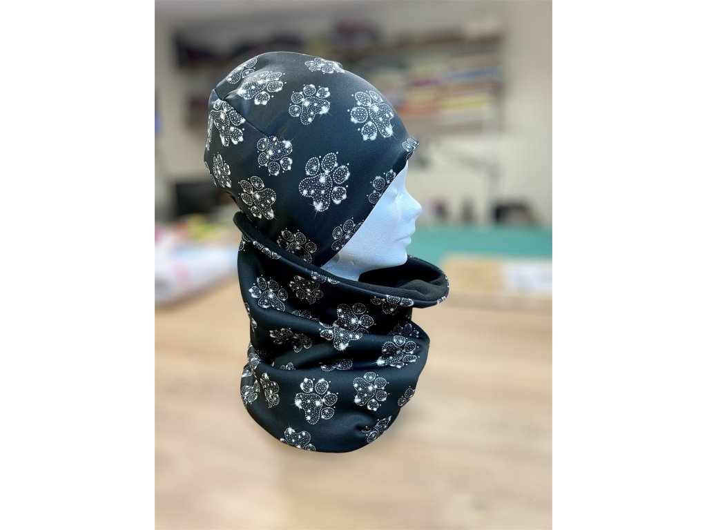 Čepice je ušita ve stylu homeless. Velikost si vyberte v nabídce níže . Nákrčník je ušitý v univerzální velikosti cca 60cm (celkový obvod) x 30cm (výška). Materiálové složení je příjemný potištěný funkční úplet v kombinaci s černým fleesem.
