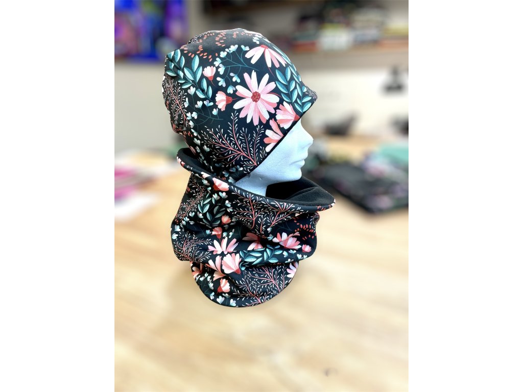 Čepice má obvod 50cm a je určena pro obvod hlavy až 59cm. Materiálové složení je příjemný potištěný funkční úplet v kombinaci s fleesem.