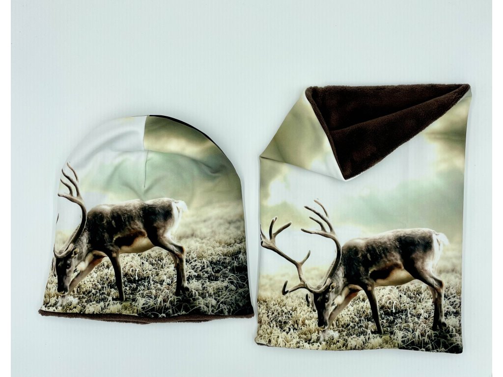 Nákrčník a čepice s jelenem