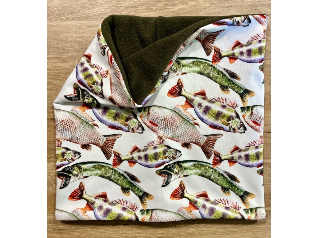 Nákrčník je ušitý v univerzální velikosti cca 60 (celkový obvod) x 30cm (výška). Materiálové složení je příjemný potištěný funkční úplet v kombinaci s fleecem.