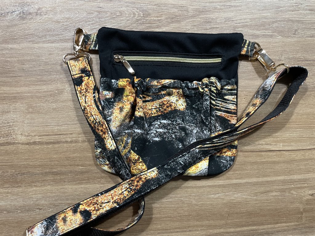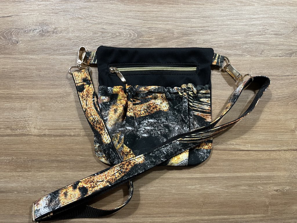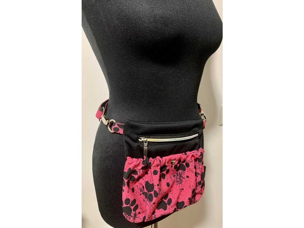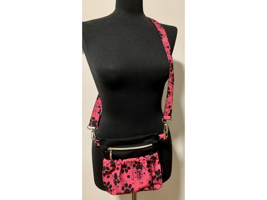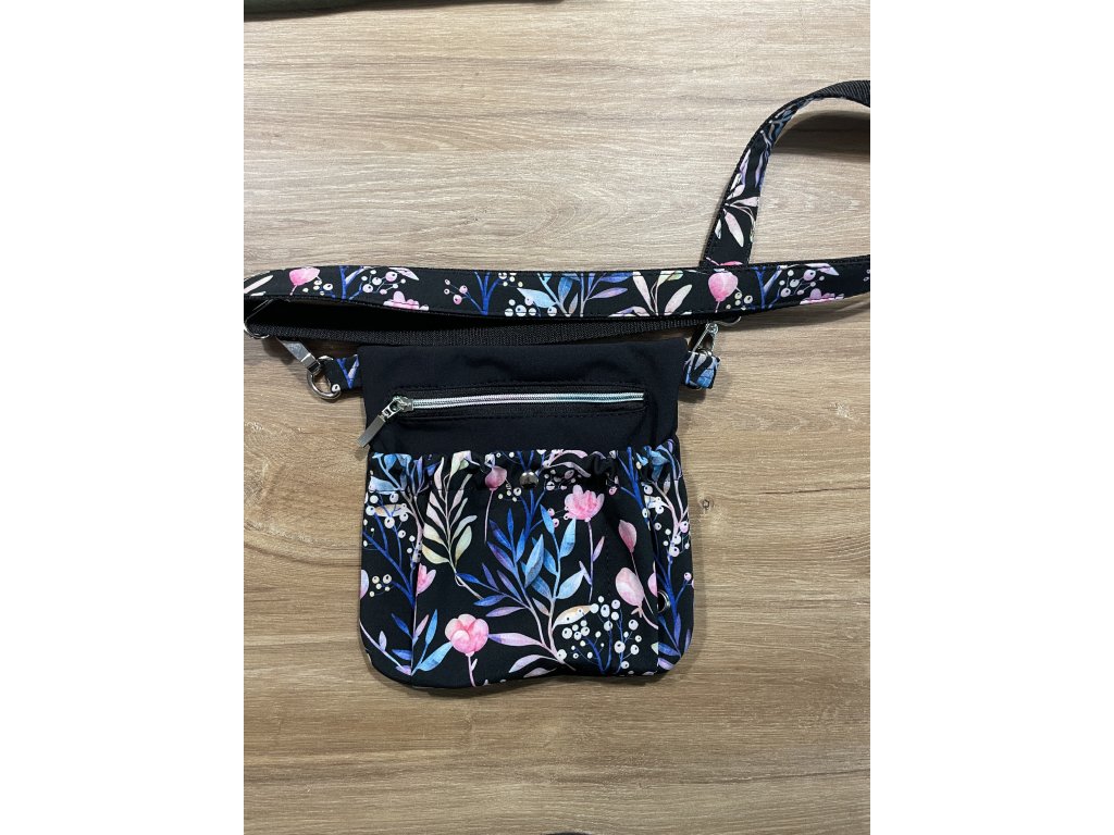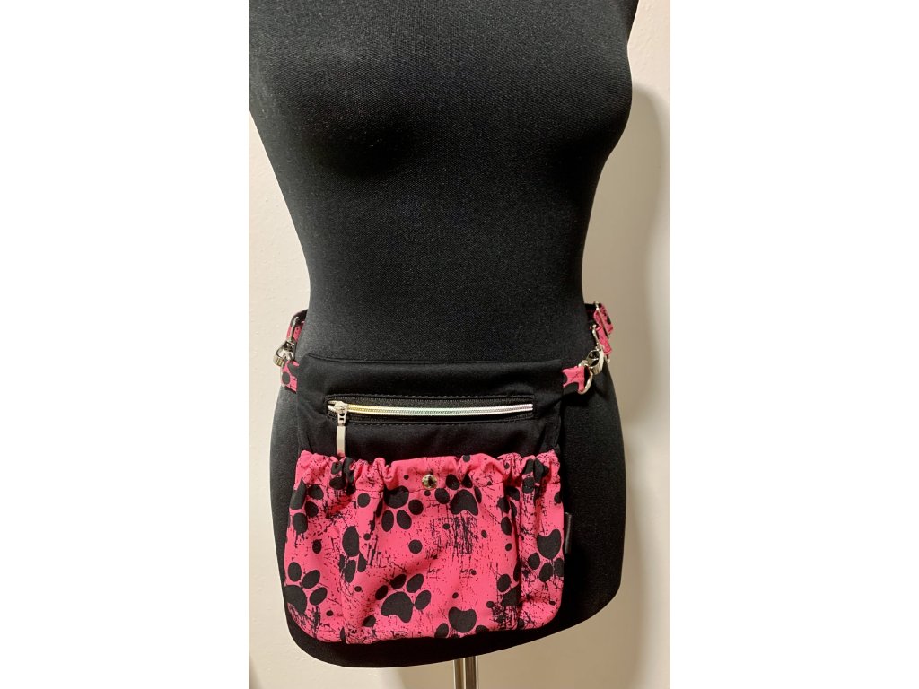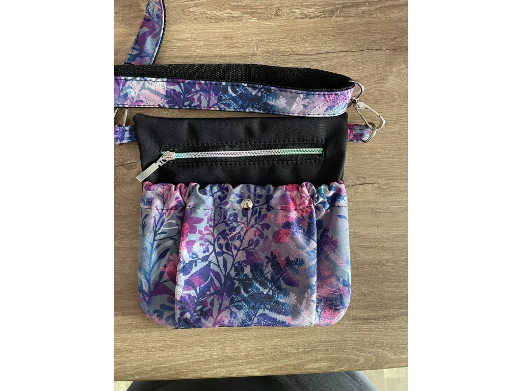 Délka popruhu: maximální délka popruhu i s karabinami je 144cm, pamlskovník můžete použít i kolem pasu - nejmenší obvod je 104cm a dá se zvětšit. Po dohodě lze popruh upravit, napište mi případně email.