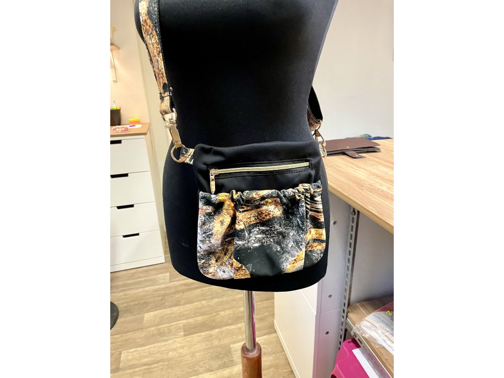 Pamlskovník je ušitý ze softshellu. Má jednu hlavní kapsu uzavíratelnou na zip, kam se pohodlně vejde mobil, klíče a další drobnosti. Menší kapsa je uzavíratelná na magnetické zapínání.